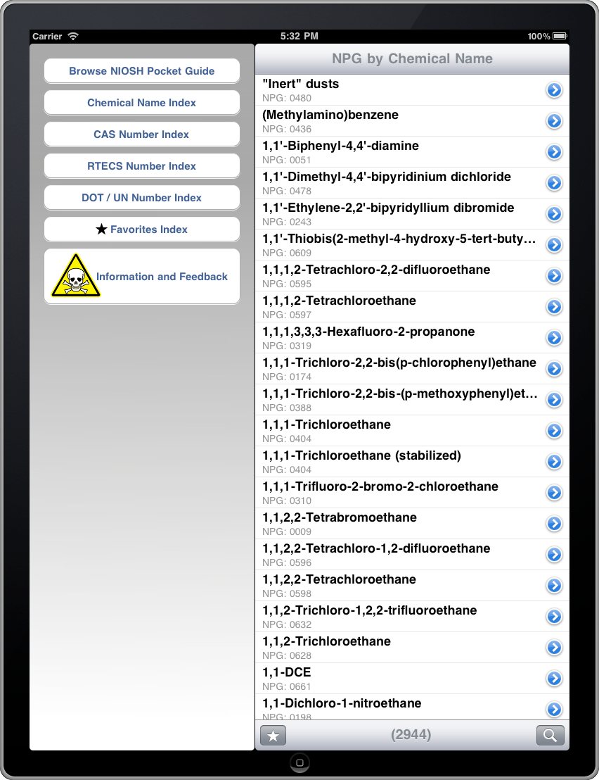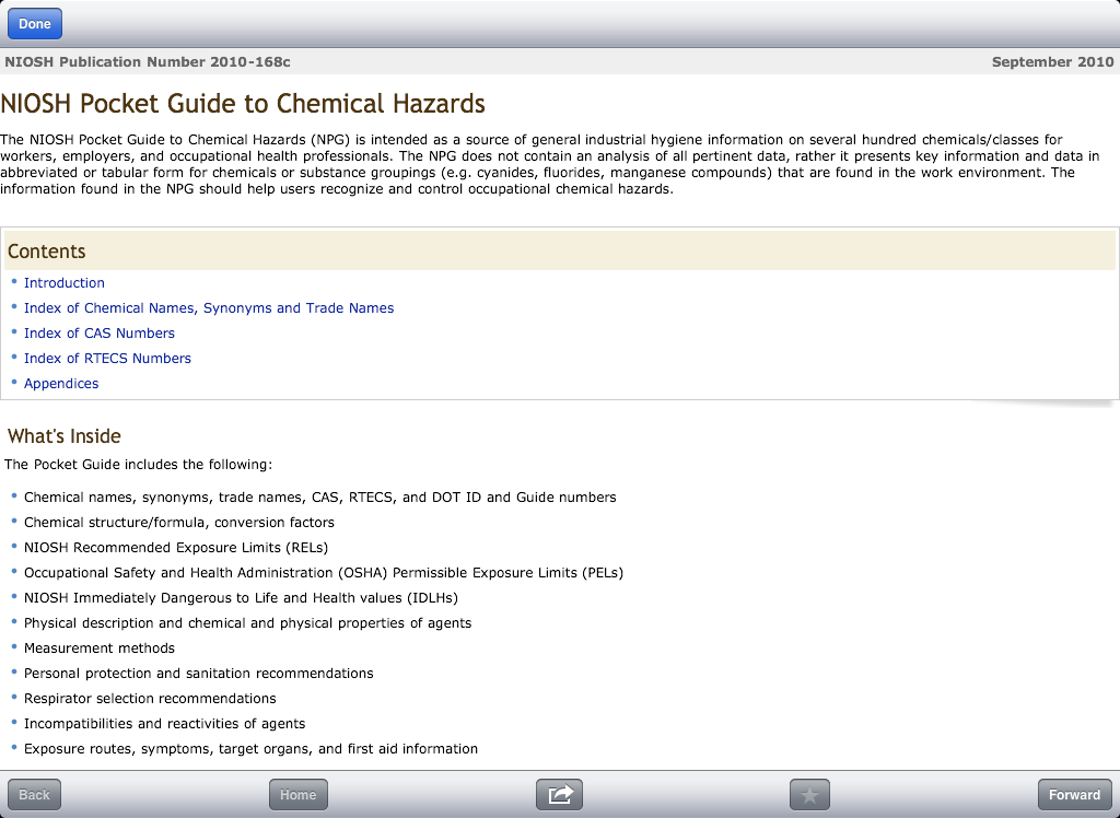 NIOSH Chemical Hazards for iPhone & iPad - iPad Screenshots.