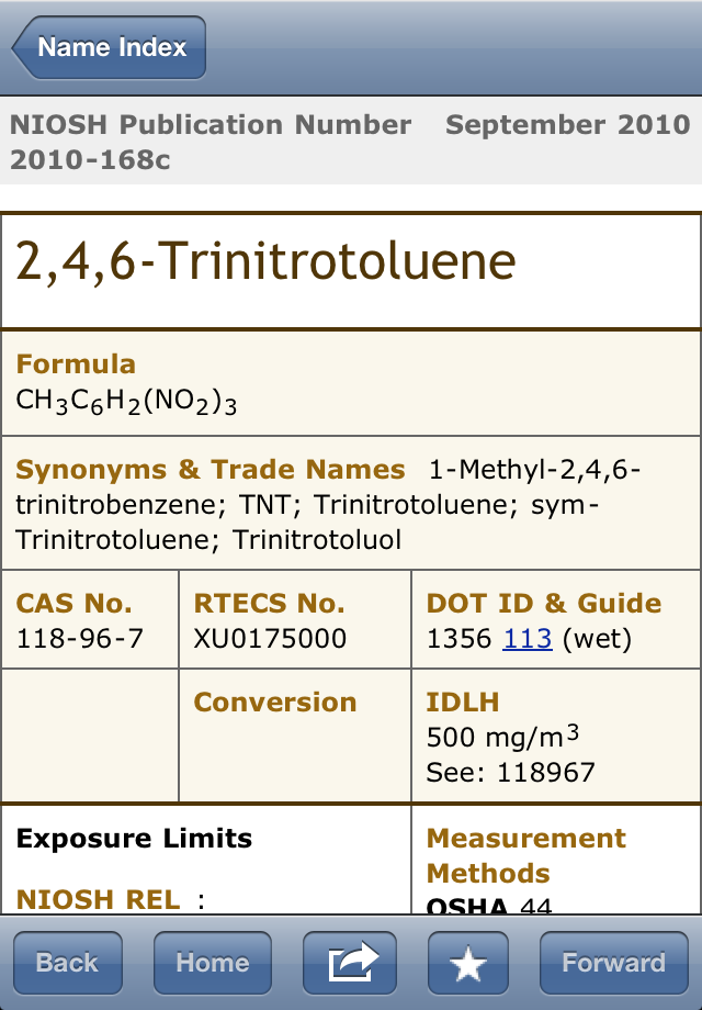NIOSH Chemical Hazards for iPhone & iPad - iPhone Screenshots.